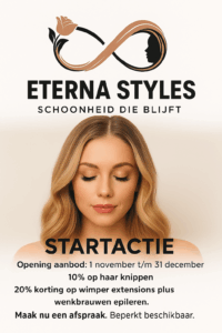 Bij Eterna Styles vind je alles voor jouw complete beautybeleving. Van knippen en kleuren tot make-up, wimpers en nagels – altijd met persoonlijke aandacht en professioneel advies.